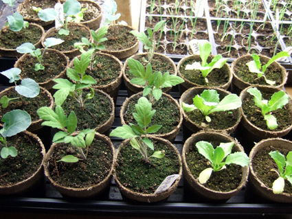 Fall gardeners will find that establishing a garden during the summer when soil temperatures are extremely high is difficult. One way to avoid seeding in adverse conditions is to establish plants in containers or pots for transplanting to the garden later in the season as the weather begins to cool. Crops like cabbage, broccoli, and cauliflower can be grown in cooler protected area, or under lights in a basement growing area for 2-4 weeks prior to setting in the garden.